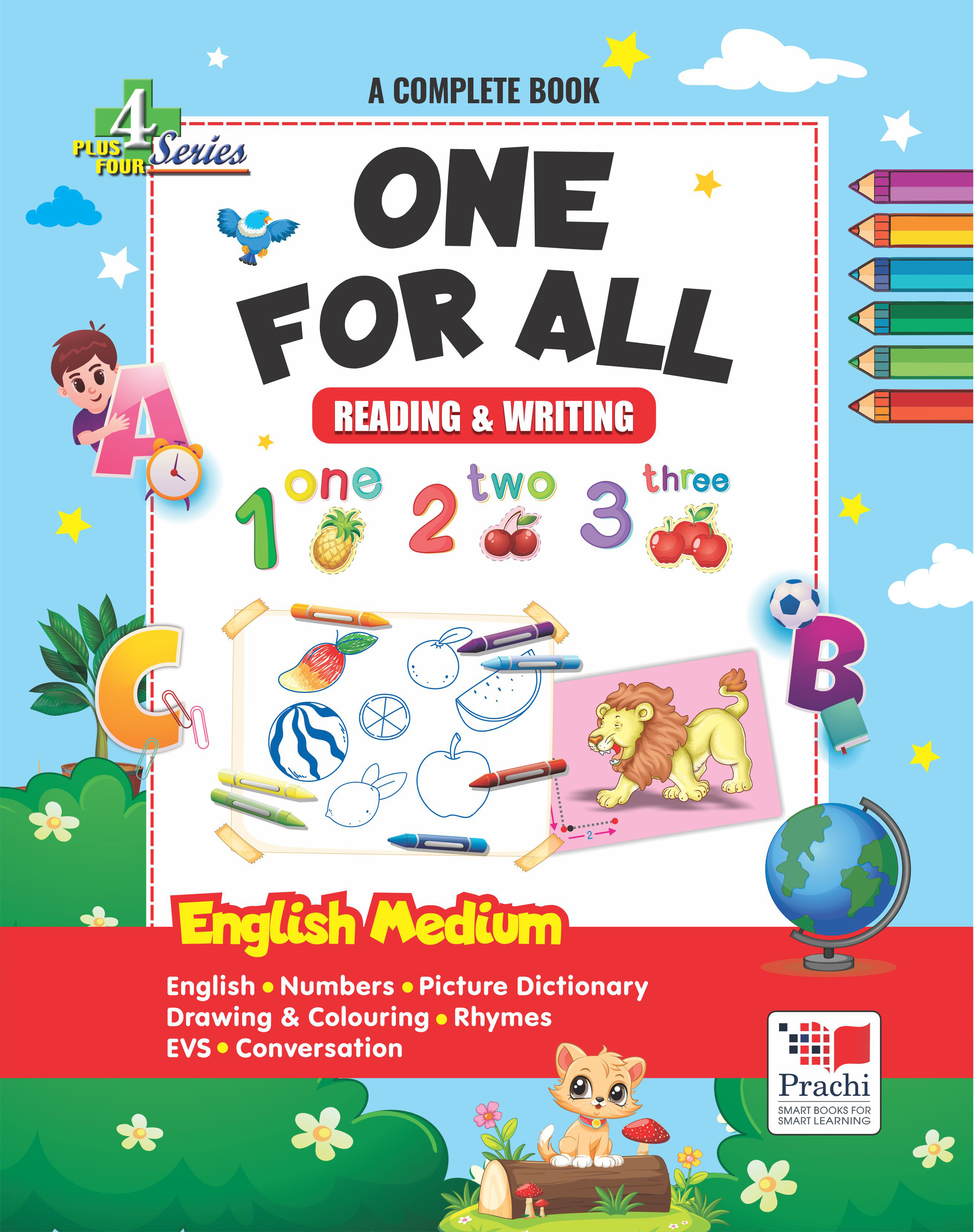 PRACHI PLUS FOUR Series Special Series for Beginners For LKG & UKG Actual process of learning begins around the age of four for a child. At this tender age, the child is inquisitive and starts recognising as he grows. This is a crucial time when a child starts interacting with the surroundings. Plus Four Series is a unique attempt to the ease out and make the process of learning creative according to the child psychology. Simple text is presented in a colourful manner with the help of attractive illustrations.